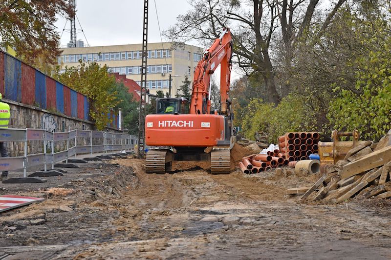 Na aktualnie przebudowywanej części ulicy trwają prace przy instalacjach podziemnych (instalacjach sanitarnych i kanalizacji deszczowej) oraz przy wykonywaniu podbudowy nowej jezdni.