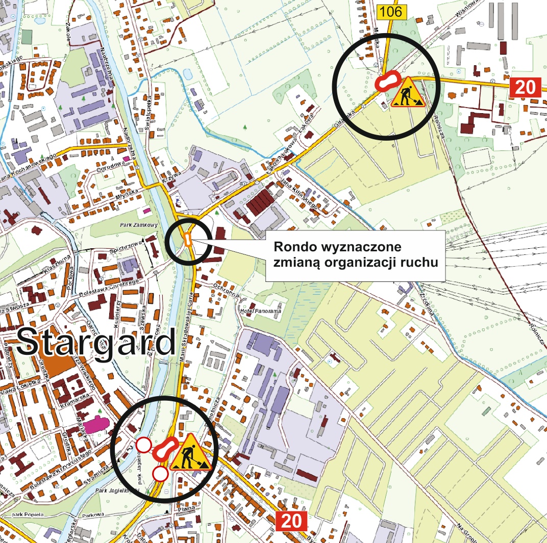 W Stargardzie trwa przebudowa dwóch skrzyżowań drogi krajowej nr 20 z drogą wojewódzką nr 106 na ronda. Po rozpoczęciu robót zaczęły się tworzyć kolejki pojazdów od strony ul. Bolesława Chrobrego na skrzyżowaniu znajdującym się pomiędzy budowanymi rondami.