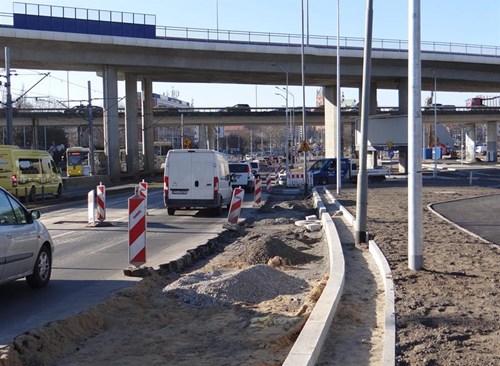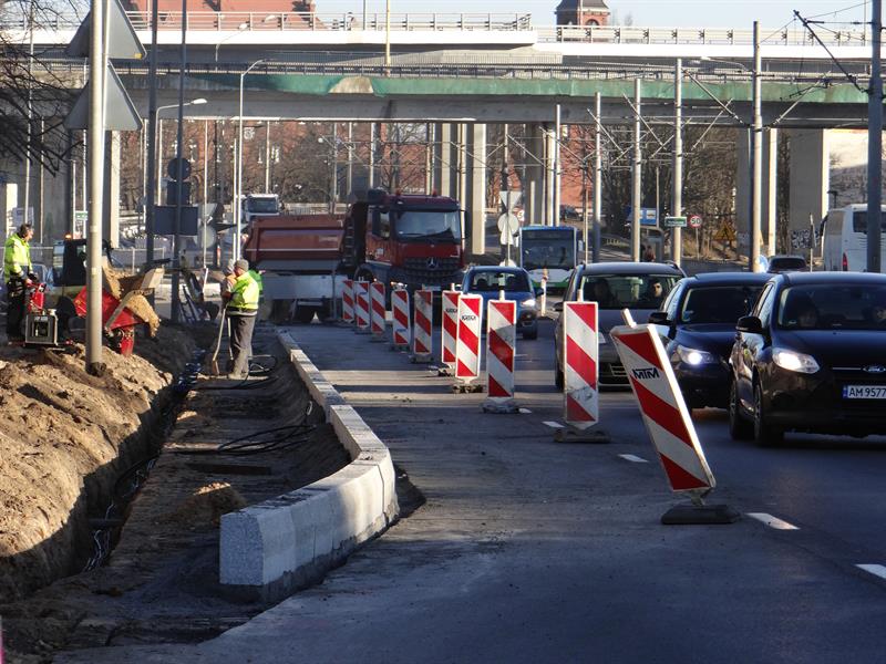 Równocześnie wykonywane są prace przy wytyczaniu skrajni nowej jezdni wzdłuż samej ul. Energetyków i uzbrajanie jej poboczy w niezbędną infrastrukturę podziemną. Stąd liczne na niemal całej jej długości zwężenia i ograniczenia ruchu do jednego pasa w kierunku mostu Długiego. Te zaczynają się tuż za zjazdem z mostu nad Parnicą w kierunku centrum.