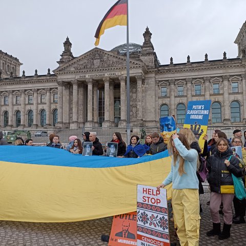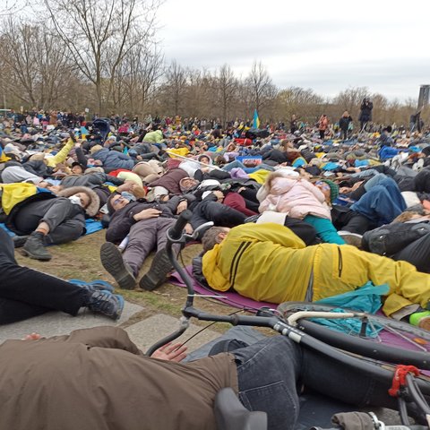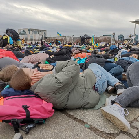 Tysiące ciał leżących przed Bundestagiem - taki porażający widok można było zobaczyć w środowy wieczór w Berlinie. To element ponad dwugodzinnego protestu, w którym wzięła udział także liczna grupa Ukraińców ze Szczecina.