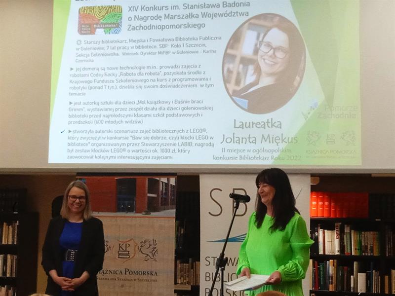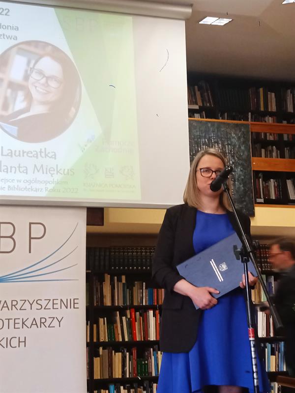 Tytuł bibliotekarza roku 2022 otrzymała Jolanta Miękus z Miejskiej i Powiatowej Biblioteki w Goleniowie. Laureatka interesuje się nowymi technologiami - prowadzi zajęcia z robotami Codey Rocky dla uczniów klas 1-3. Stworzyła też autorski scenariusz zajęć bibliotecznych z LEGO, za który została uhonorowana nagrodą w konkursie "Baw się dobrze, czyli klocki LEGO w bibliotece" organizowanym przez Stowarzyszenie LABIB. Jest również nagradzaną autorką wierszy i artykułów naukowych.