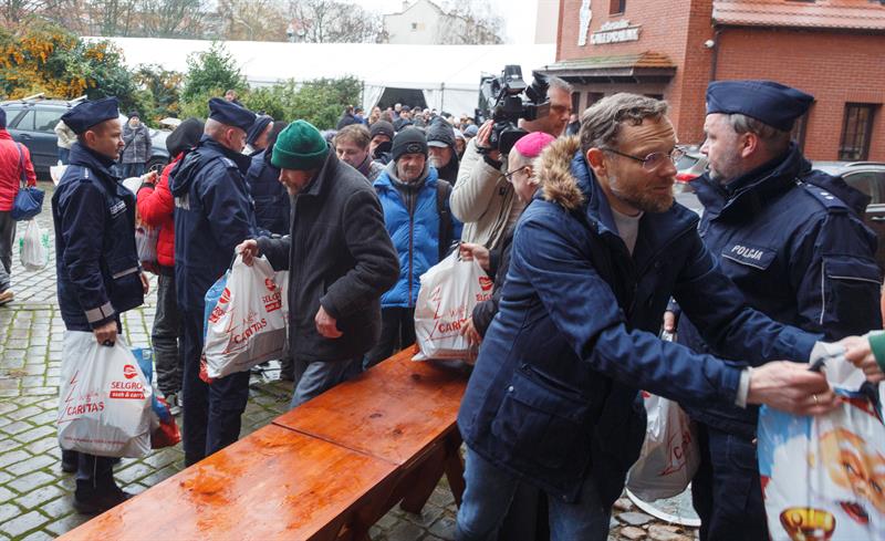 Przecież Policja zbadała już na polecenie ekologów donrostan karpi więc może podzielić się tradycyjnym ppłatkiem z bezdomnymi. Was znowu dziwi że Wigilia wypadla przed świętami?