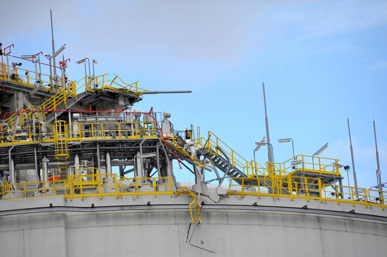 - Nad ranem 29.10.207 na terminalu LNG z powodu bardzo silnych wiatrów doszło do uszkodzenia suwnicy na dachu jednego ze zbiorników, która z kolei uszkodziła rurociąg służący do opomiarowania zbiornika. W wyniku zdarzenia doszło do niewielkiego uwolnienia się gazu odparowanego do atmosfery. Sytuację cały czas monitorują służby eksploatacyjne terminalu LNG i na bieżąco zarządzają sytuacją. Zdarzenie monitoruje również Państwowa Straż Pożarna, powiadomiono także Wojewódzkie Centrum Zarządzania Kryzysowego oraz Urząd Miasta Świnoujście. Instalacja została zatrzymana awaryjnie. - podaje Tomasz Pietrasieński, rzecznik prasowy Gaz-Systemu.