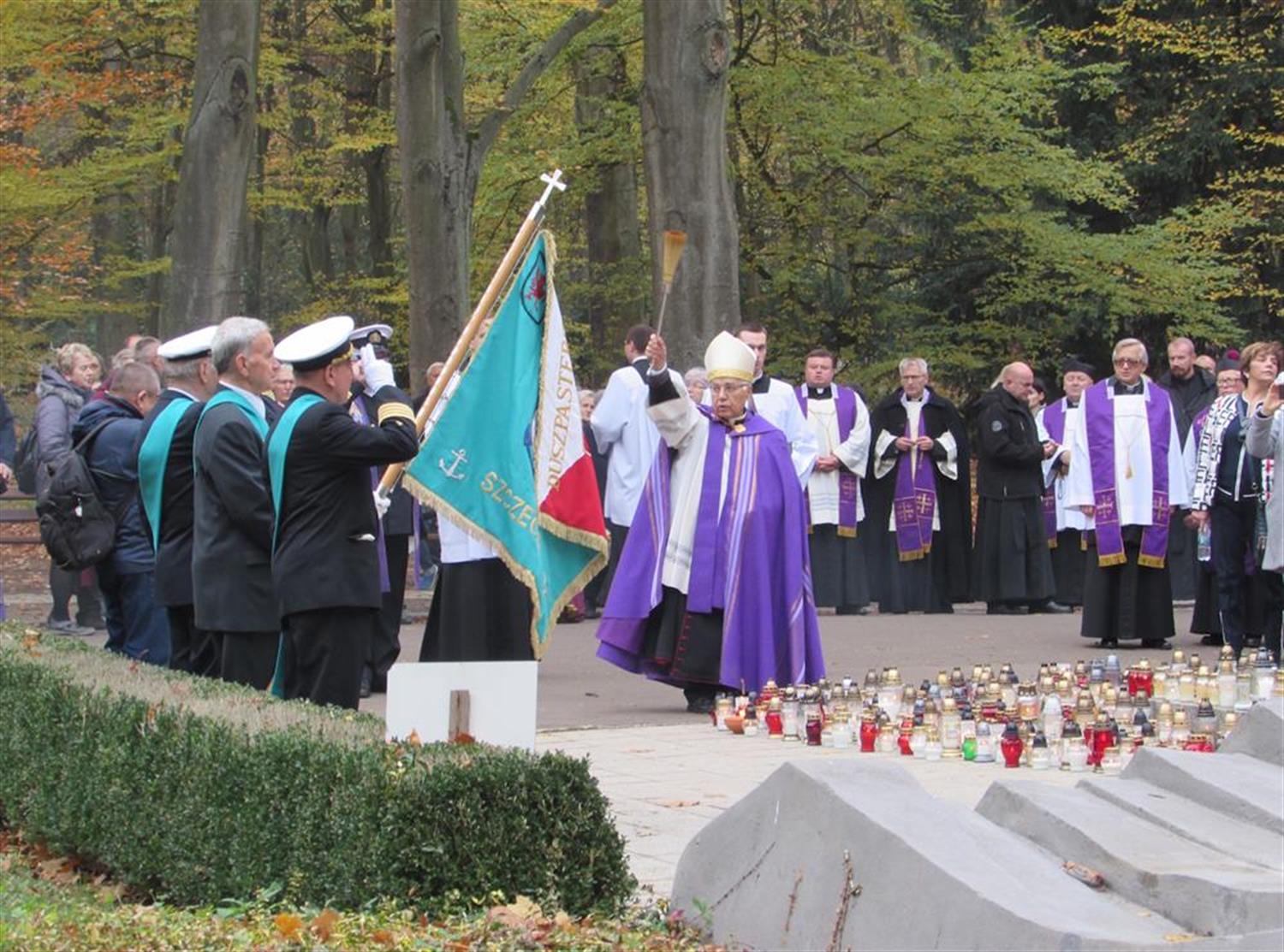 Przy pomniku zatrzymała się też procesja modlitewna za zmarłych, z udziałem m.in. ks. abpa Andrzeja Dzięgi, metropolity szczecińsko-kamieńskiego, oraz biskupów Mariana Błażeja Kruszyłowicza i Henryka Wejmana, a także ks. Stanisława Flisa, diecezjalnego duszpasterza ludzi morza. Modlono się za tych, którzy odeszli już na wieczną wachtę.