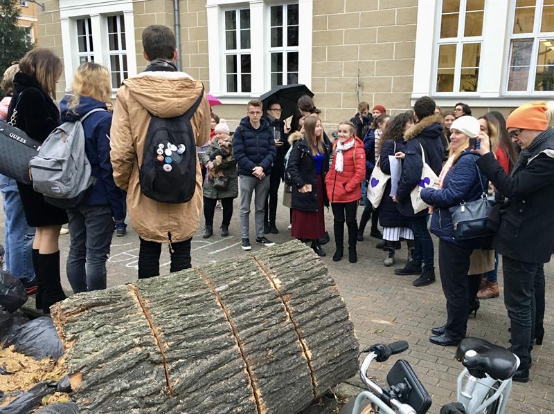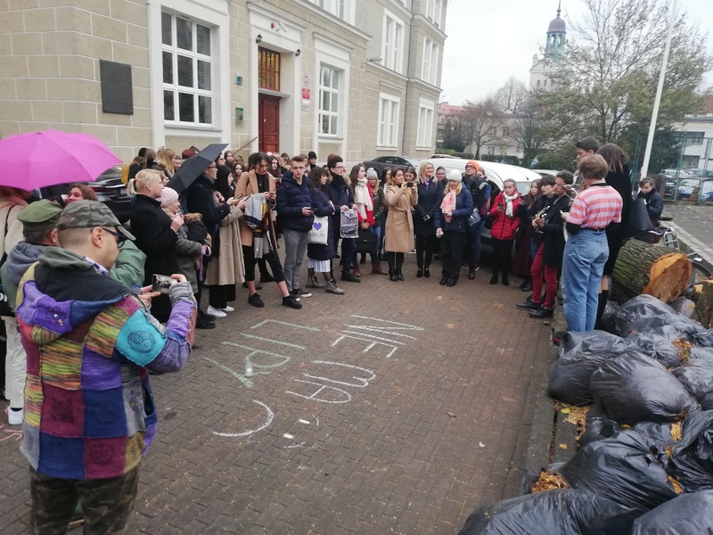 Przyczynkiem do wystąpienia młodzieży była ostatnia, sobotnia, wycinka dwóch okazałych wiekowych drzew na dziedzińcu placówki, gdzie wkrótce ma się rozpocząć budowa nowoczesnego wielofunkcyjnego boiska.