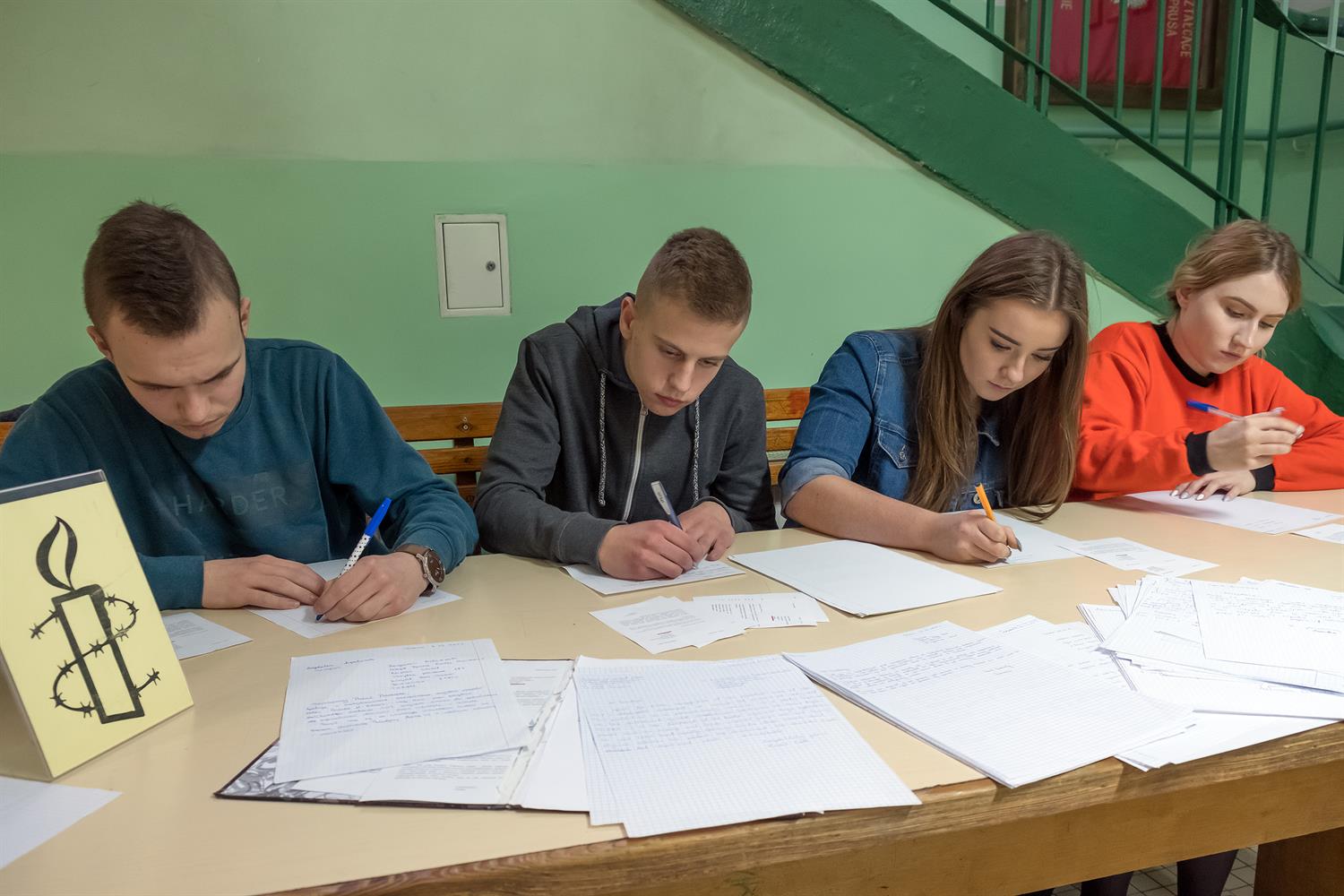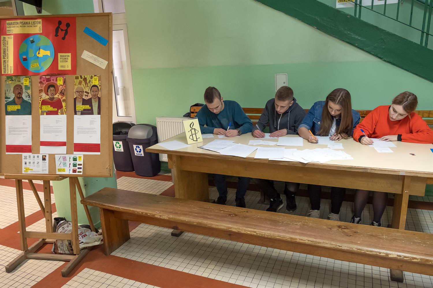 Na zdjęciu: Licealiści z Czwórki piszą w sprawie uwięzionych i zagrożonych obrońców praw człowieka