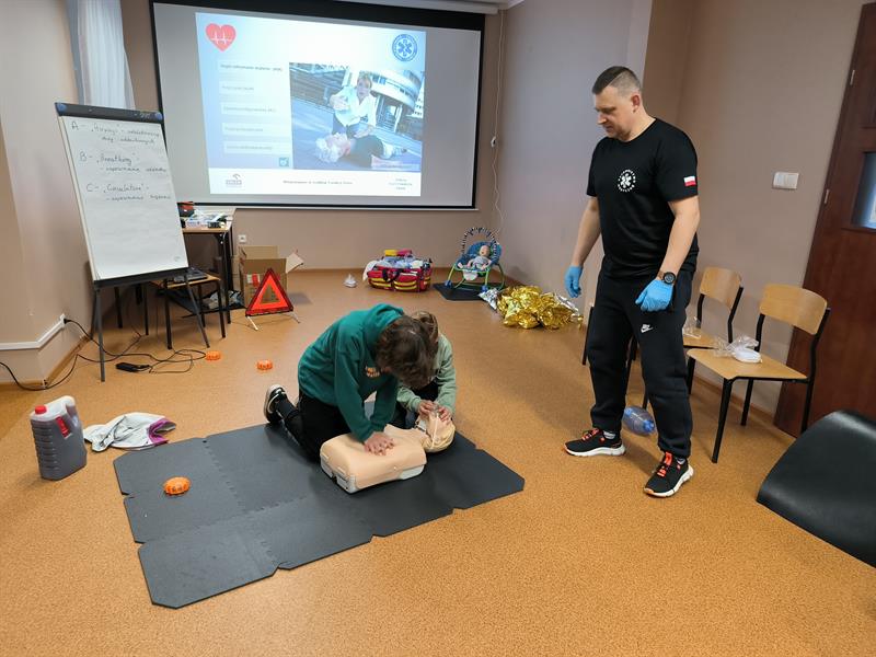 Szkolenie obejmuje też część praktyczną, m.in. z prowadzenia resuscytacji krążeniowo–oddechowej - zarówno u dorosłych, jak i u dzieci. Każdy mógł to przećwiczyć na fantomie, który był połączony z aplikacją wskazującą czy działania ratunkowe są skuteczne.