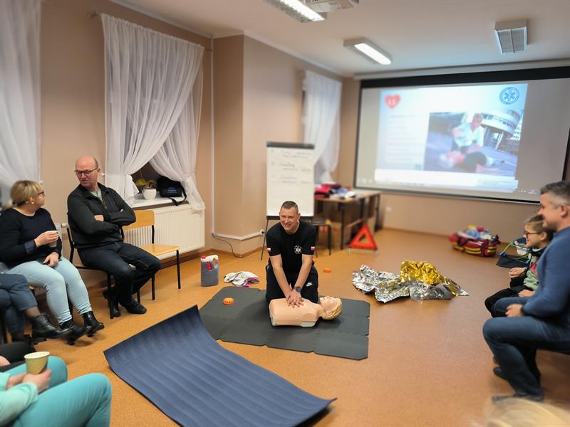 - Razem z tutejszą Radą Sołecką wpadliśmy na pomysł, żeby dla mieszkańców zrobić taki kurs pierwszej pomocy - mówi. - Uczymy, jak postępować w razie takich sytuacji, jak np. udar, zawał - jak rozpoznać, jak zareagować, w jaki sposób ułożyć poszkodowanego, czy dawać mu coś do picia; podpowiadamy, jak postępować w przypadku stwierdzenia hipoglikemii; uczymy jak przeprowadzać szybki wywiad, który nam pomoże usystematyzować co się stało, podpowie jak zareagować, czy wzywać pogotowie.