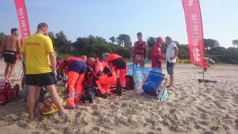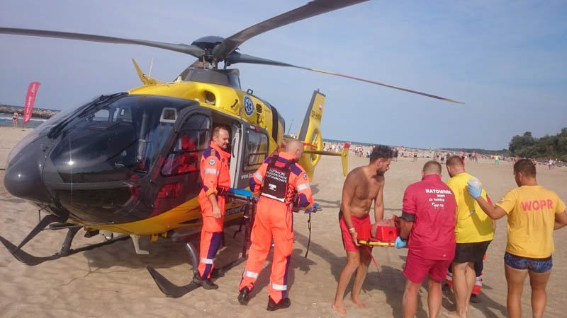 Mężczyzna z Jarocina kąpał się w niedzielę (19 sierpnia) po południu w morzu na dzikiej plaży w Jarosławcu na wybrzeżu Słowińskim (pow. sławieński). Miał szczęście, bo kiedy zasłabł wczasowicze wyciągnęli go na brzeg. Można powiedzieć, że w ostatniej chwili. Ratownikom, po kilkunastominutowej reanimacji, udało się przywrócić mu oddech. Przytomnego już 67-letniego turystę do szpitala w Koszalinie zabrał śmigłowiec lotniczego pogotowia ratunkowego.