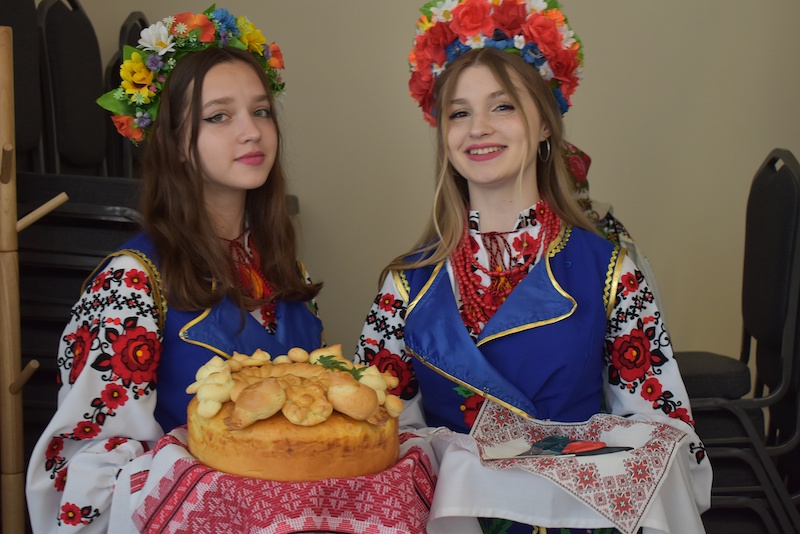 Gości witano tradycyjnym, ukraińskim chlebem, zwanym korowajem. – Witajcie w naszej domiłce! – zapraszał Paweł Pałczyński, szef koła Ukraińców w Stargardzie. Fot. Wioletta Mordasiewicz