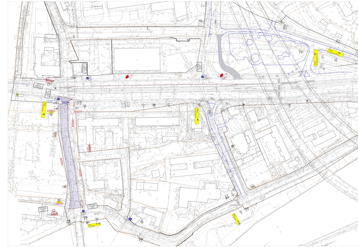 Pierwsze wygrodzenia w pasie pobocza dla pieszych od strony Przychodni Portowej i biurowca, w którym swoją siedzibę ma m.in. oddział Totalizatora Sportowego, ustawione były już w miniony poniedziałek. Wymalowana została też w żółte pasy tymczasowa zebra, wyznaczająca przejście przez jezdnię. Pojawiły się też elementy oznakowania pionowego tego rejonu na czas robót.