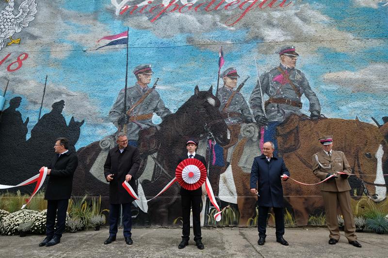 Mural nawiązujący do 100. rocznicy odzyskania przez Polskę niepodległości oraz postaci ułanów podolskich został odsłonięty w piątek na ścianie budynku Zespołu Szkół nr 5 w Szczecinie. W uroczystościach m.in. wziął udział wiceprezydent Krzysztof Soska.