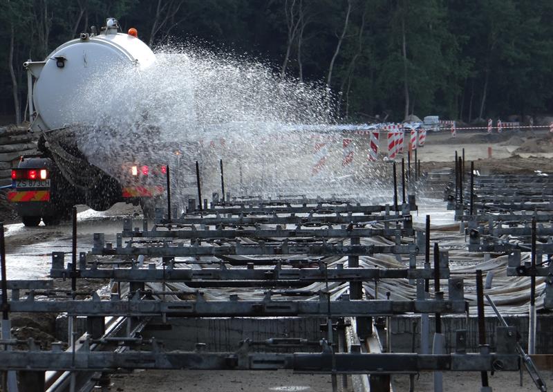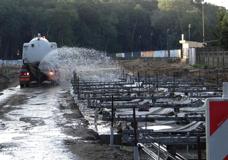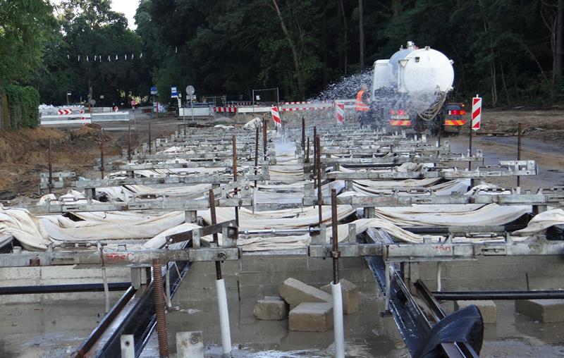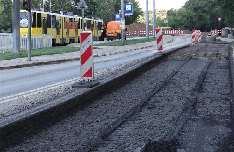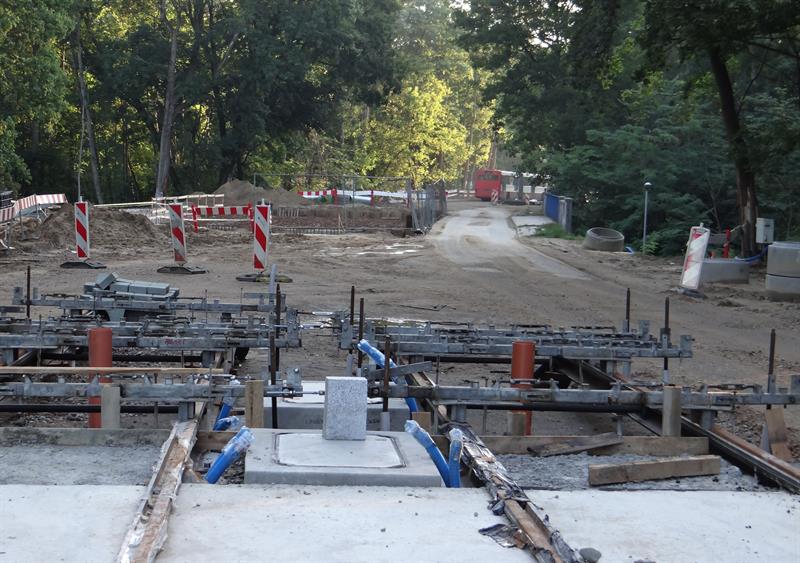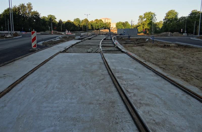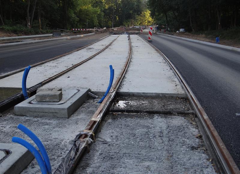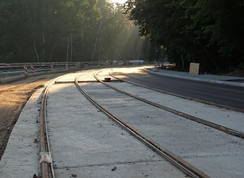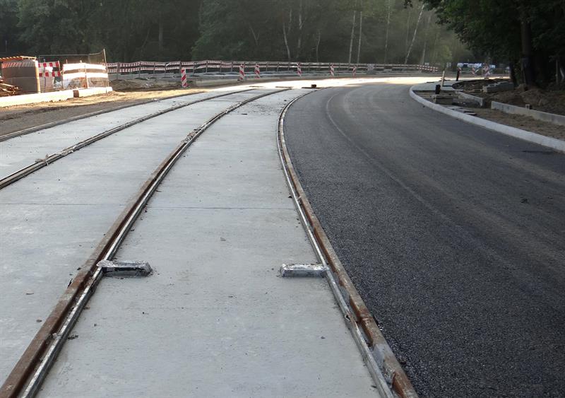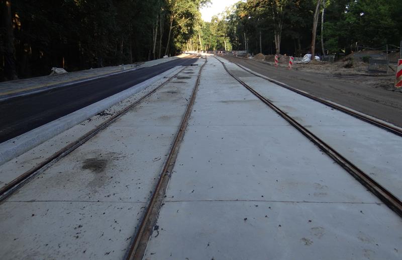 Pas szlaku dla tramwajów (z wyjątkiem rejonu przebudowywanego tam wiaduktu) do wysokości przystanku przed skrzyżowaniem z ul. Międzyparkową w kierunku stadionu Arkonii po osadzeniu w warstwie betonowej pierwszych odcinków zmontowanych międzytorza zostały zalane dodatkową warstwą betonowego podłoża. Kolejny fragment zmontowanych torów jest już też na swoim miejscu - tuż za zakrętem na wysokości bramy wjazdowej na stadion. Przed zbyt szybkim wysychaniem beton jest regularnie polewany wodą z cystern.