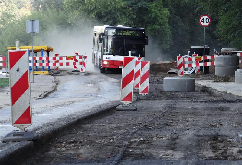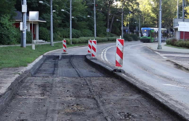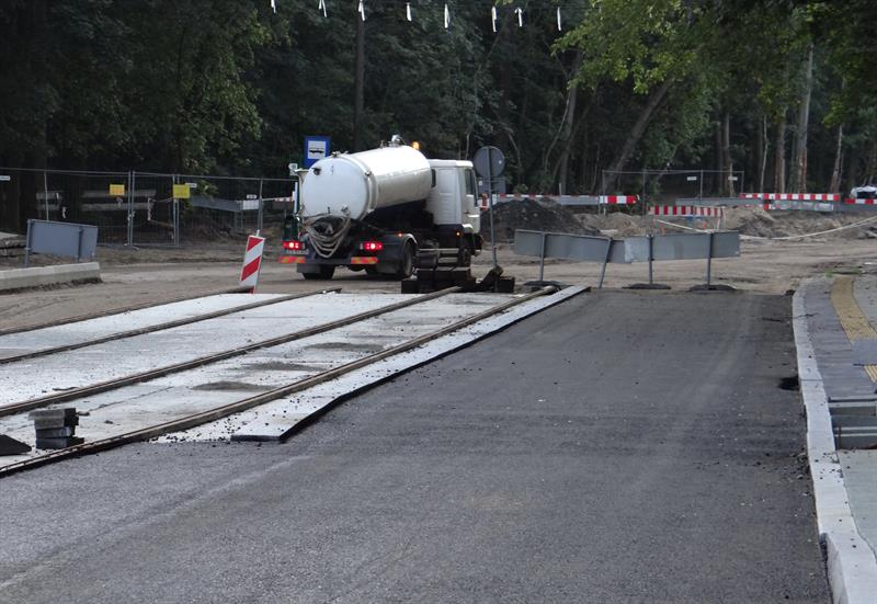 Z ciężkim sprzętem budowlanym drogowcy dotarli także w rejon samej pętli Las Arkoński (tę w dalszym etapie inwestycji również czeka przebudowa), gdzie rozpoczęło się zrywanie do połowy starej nawierzchni jezdni tuż za zjazdem tramwajów na pętlę.