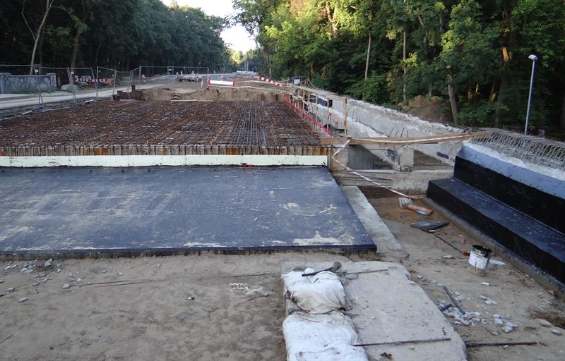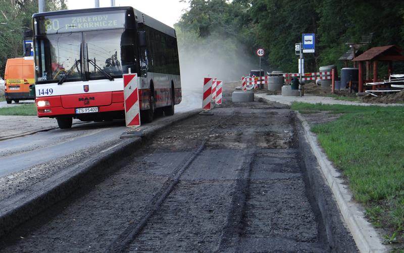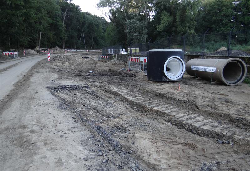 Najbardziej zaawansowane są roboty na wyłączonym z ruchu od początku tego roku fragmencie pasa jezdni al. Wojska Polskiego (w kierunku Głębokiego) od schroniska dla psów do leśnej alejki spacerowej prowadzącej do kąpieliska Arkonka. I dalej od rozjazdu w rejonie nowego ronda w kierunku ul. Międzyparkowej. Na kilkusetmetrowej w sumie długości wylane zostały dotąd także warstwa podbudowy bitumicznej i warstwa wiążącej na odcinku od ronda do okolic u. Międzyparkowej. Z przerwą w miejscu, gdzie wciąż trwają prace przy wzmacnianiu konstrukcji poniemieckiego wiaduktu nad biegnącą poniżej leśną alejką spacerową.