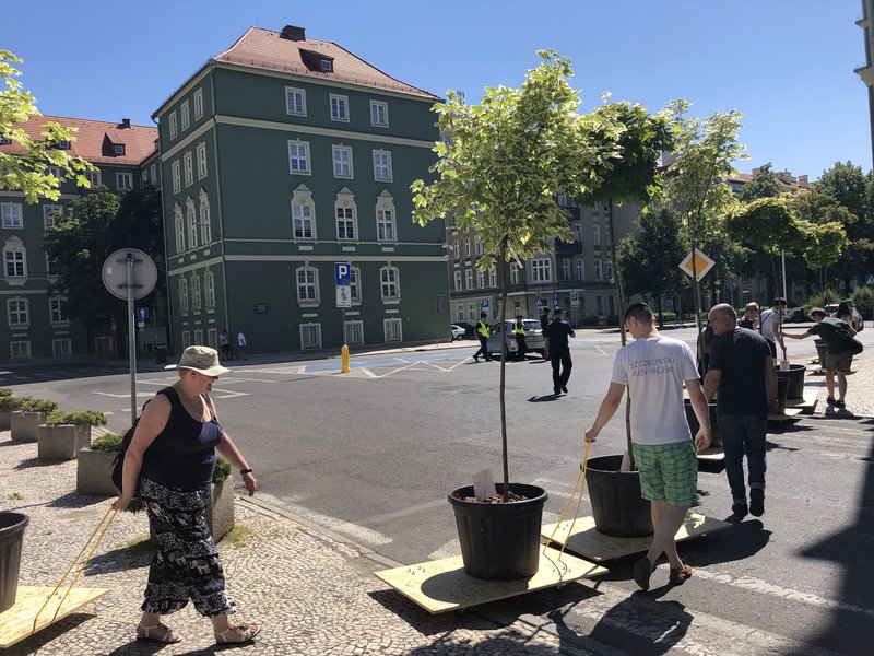 - Zaczynamy od Śródmieścia, gdzie ten deficyt zieleni jest bardzo zauważalny. Chcemy pokazać lokalnej społeczności, jak zmienia się estetyka przestrzeni pod wpływem zieleni oraz jak inaczej się wtedy żyje - mówi Karolina Kulińska ze Szczecińskiego Ruchu Miejskiego. - Przy okazji chcemy pokazać jakie zalety mają drzewa, czyli produkują tlen, oczyszczają powietrze i dają cień, który jest szczególnie pomocny w takie dni, jak ten.