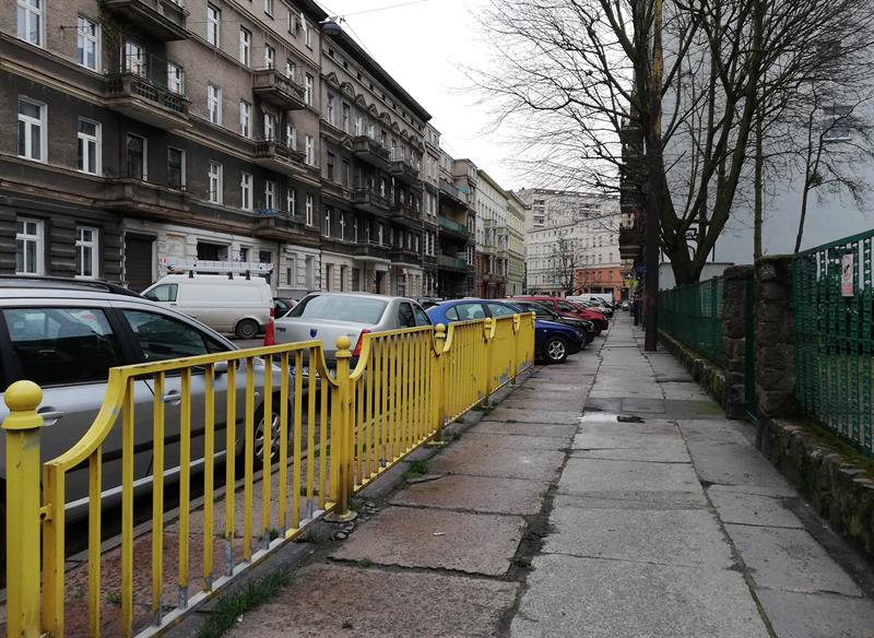 Wzdłuż każdej z ulic wyznaczone zostaną zatoki postojowe do parkowania równoległego z jednej i prostopadłego z drugiej strony jezdni. W miejscach narażonych na nieprzepisowe parkowanie pojazdów wykonane zostaną słupki zabezpieczające oraz ustawione zostaną donice z białego betonu i z siedziskami z desek ze sztucznego drewna. Ponadto pojawią się stojaki rowerowe. ©℗