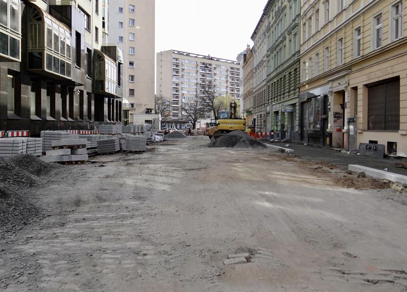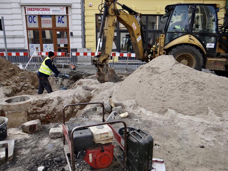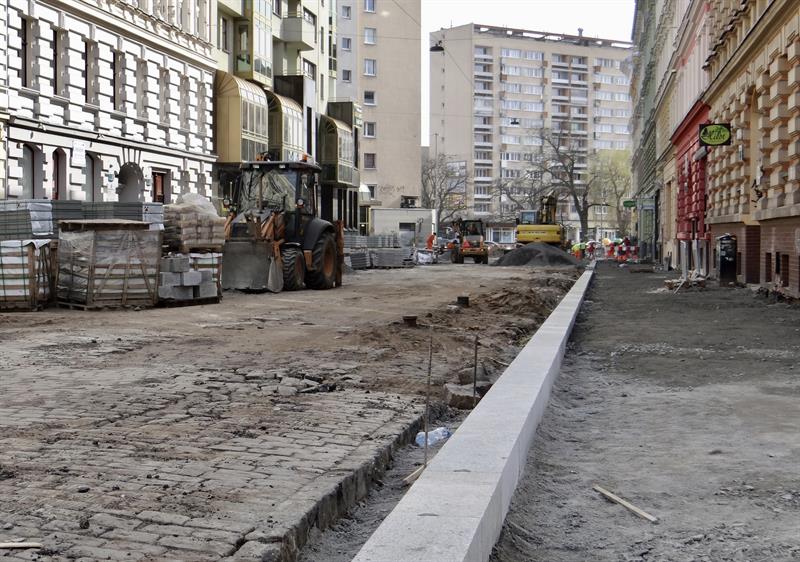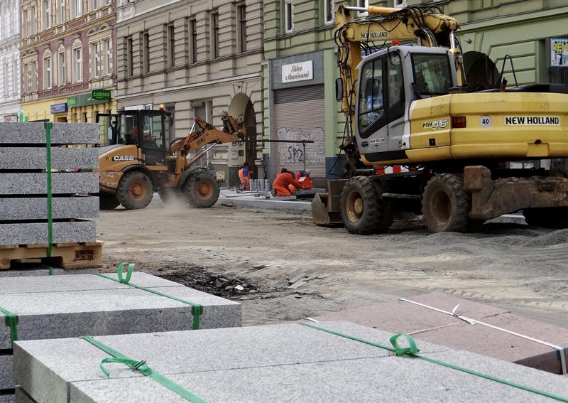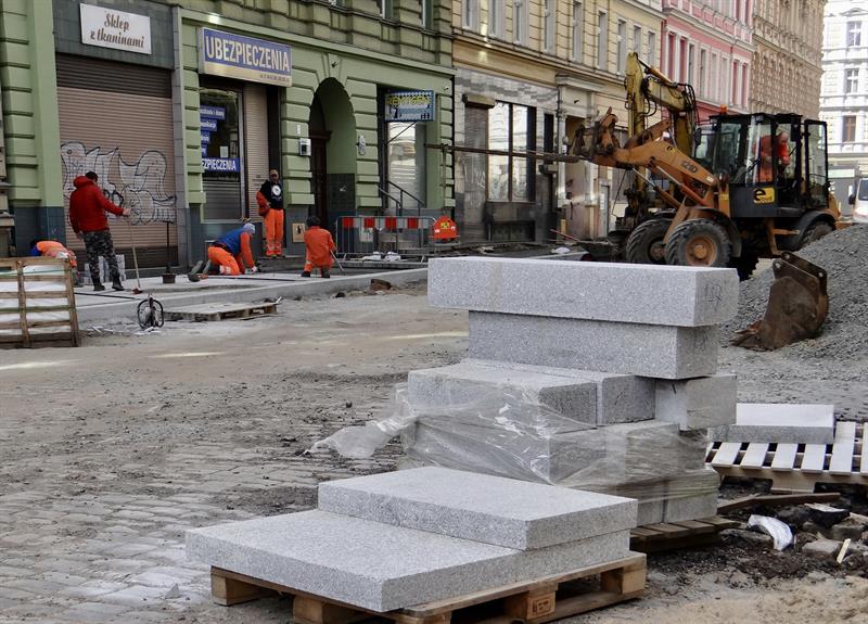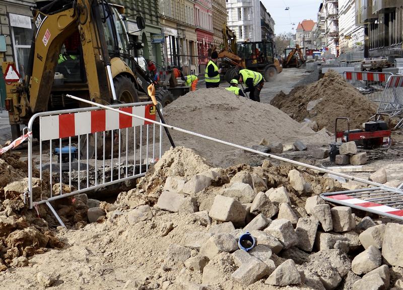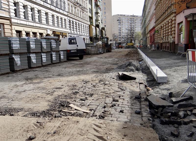 Mijają trzy tygodnie od przekazania placu przebudowy na śródmiejskiej ul. Bohaterów Getta Warszawskiego w Szczecinie spółce Elbud. W tym czasie - po zerwaniu wierzchniej warstwy nakładki asfaltowej oraz rozbiórce części chodników - na dojściu do niej od strony pl. Zgody gotowa jest nowa podbudowa pod na nowo wytyczony krawężnikami pas chodnika, a po jednej ze strony ulicy na odcinku do skrzyżowania z ul. królowej Jadwigi wzdłuż budynków trwają już prace brukarskie przy układaniu nowych płyt. Równolegle prowadzone są wykopy związane z wymianą podziemnych instalacji.
