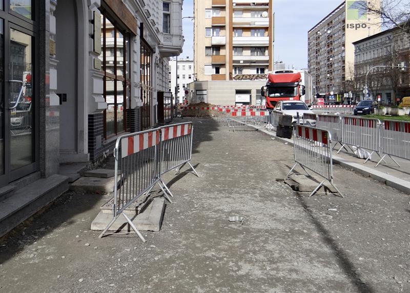 Na zdjęciu: Pierwszy etap inwestycji obejmuje jednokierunkowy odcinek ul. Bohaterów Getta Warszawskiego z dojściem do niej od pl. Zgody do skrzyżowania z ul. Królowej Jadwigi. Dla samochodów jest on nieprzejezdny.