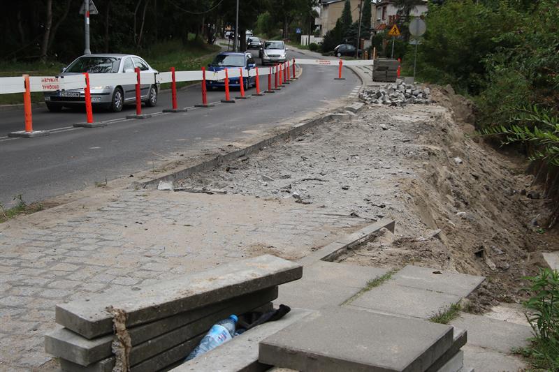 Prace na ul. Chopina, prowadzone przez firmę Niwa Szczecin sp. z o.o., są związane z przebudową muru oporowego, który ma zapobiegać osuwaniu się ziemi w stronę Skarbówka. Jak zapowiadał Zarząd Dróg i Transportu Miejskiego, prace miały zostać zakończone w ciągu trzech do czterech tygodni – obecnie zostały niecałe dwa. Jak jednak pokazują zdjęcia z 20 sierpnia, jeszcze nie widać, żeby nowy mur pojawiał się na miejscu budowy.