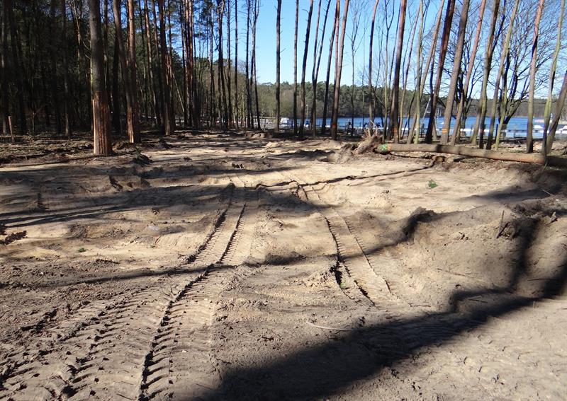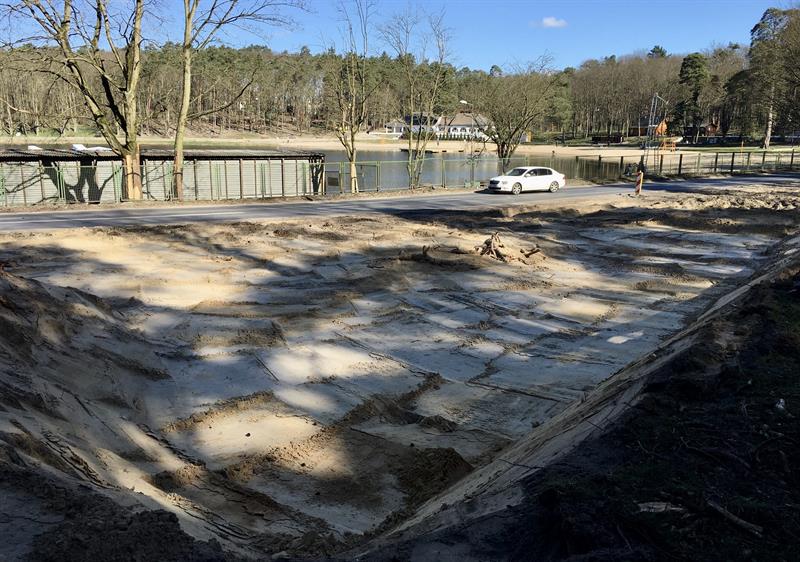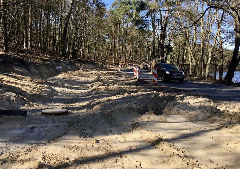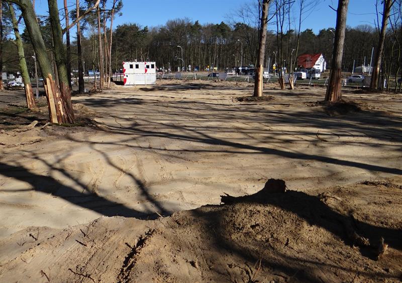 Spółka STRABAG, wykonawca inwestycji, po formalnym przekazaniu z pracami przy budowie nowego węzła przesiadkowego w rejonie dotychczasowej pętli tramwajowo-autobusowej ruszył w drugiej dekadzie stycznia. A ich pierwszym i najbardziej widocznym etapem były wycinki drzew w pasach poboczy od rogatek Szczecina, od granicy miasta z gminą Dobra, po ul. Miodową i od al. Wojska Polskiego, w rejonie starego parkingu leśnego naprzeciwko jeziora, po odcinek ul. Emila Zegadłowicza do jej skrzyżowania z ul. Kąpieliskową. W rejonie tych dwóch ostatnich teraz trwa rozbiórka nawierzchni chodnika, który biegnie wzdłuż ogrodzenia miejskiego kąpieliska. Dla pieszych wyznaczone zostało tymczasowe obejście, a wkrótce – po rozbiórce go w całości – będą oni mieli do dyspozycji na czas niezbędny do przebudowy prowadzący po przeciwnej stronie nieopodal stawu, a zaczynający się od przejścia przy pętli od ul. Miodowej śródleśny pas ścieżki pieszo-rowerowej.
