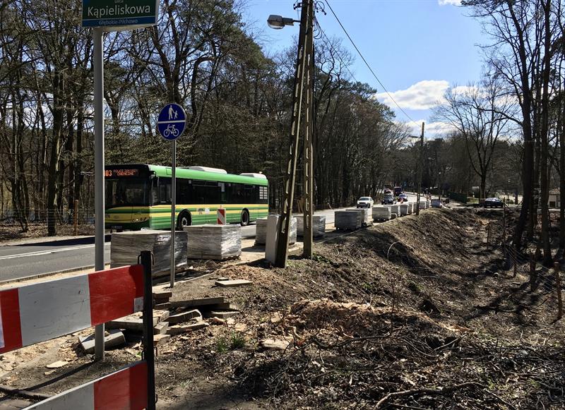 - Postęp prac na budowie jest coraz bardziej widoczny. Zakończone w minionych dniach prace przygotowawcze pozwoliły wykonawcy na rozpoczęcie kolejnego etapu robót. Trwają prace ziemne i przy uzbrojeniu podziemnym. Zdjęto pierwsze powierzchnie ziemi urodzajnej na potrzeby prowadzenia pierwszych wykopów i nasypów. Rozpoczęto roboty ziemne w obszarze poszerzenia pętli tramwajowej oraz parkingu w rejonie skrzyżowania al. Wojska Polskiego i ul. Hieronima Kupczyka. Poszerzony został również pas ziemi w ciągu samej ul. Hieronima Kupczyka w kierunku parkingu leśnego. Układane są pierwsze odcinki przyszłej kanalizacji deszczowej wzdłuż tej ulicy – wylicza Piotr Zieliński, rzecznik prasowy miasta ds. inwestycji - Przebudowano także kabel średniego napięcia wzdłuż al. Wojska Polskiego oraz w 80% zrealizowano prace przy przebudowie gazociągu.