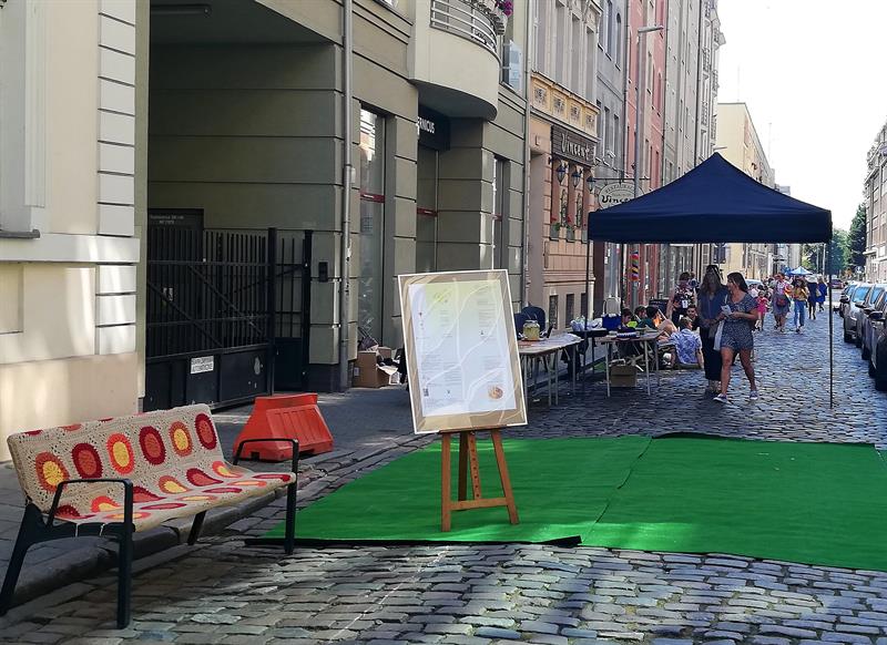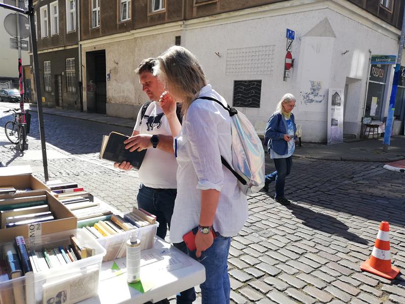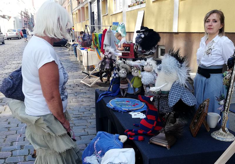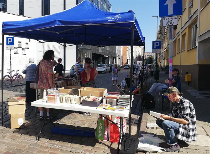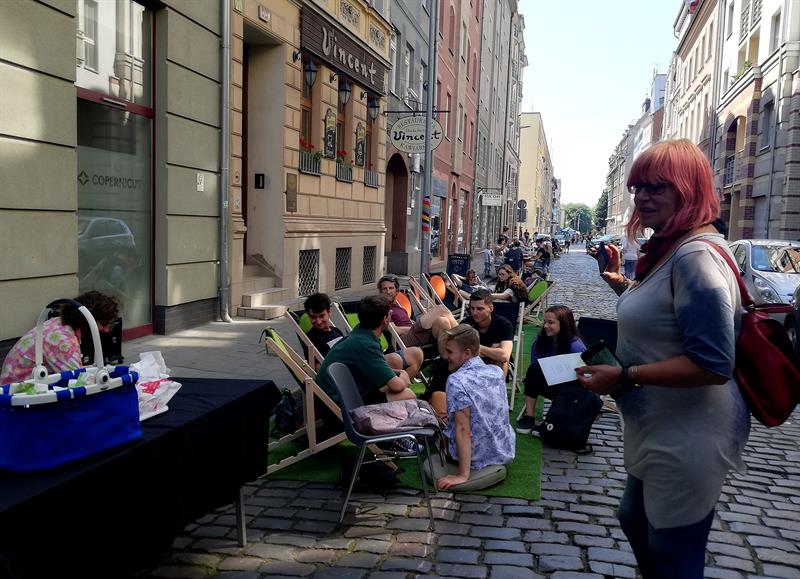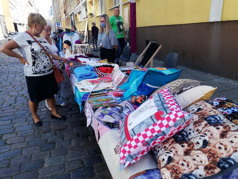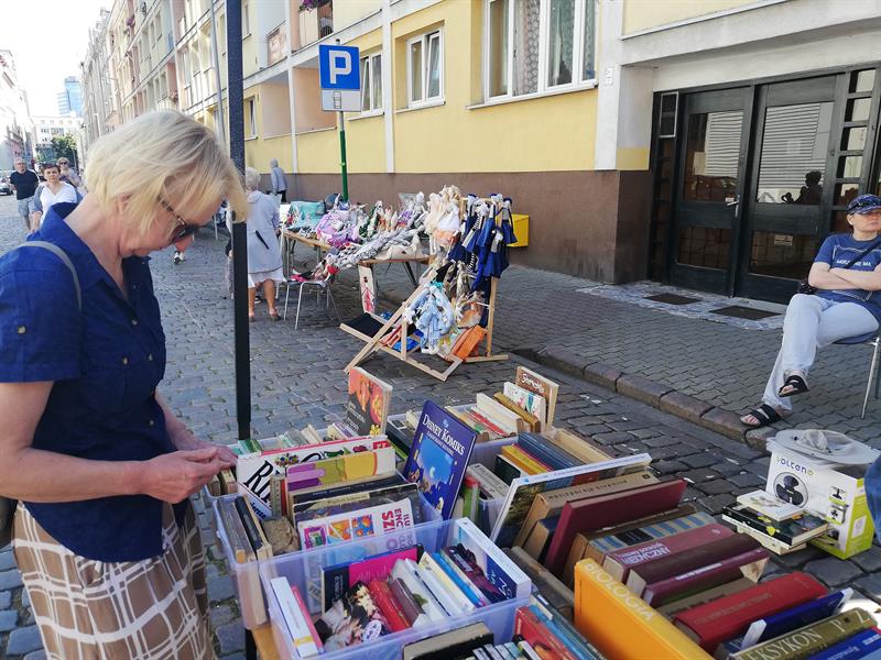 Jest kolorowo i gwarnie. Można posiedzieć na leżakach wyłączonego z ruchu - na czas imprezy - odcinka od ul. Łaziebnej po pl. Żołnierza Polskiego. Uwagę przyciąga także kącik literacki. Z wymianą (bezgotówkową) książek oraz czytaniem legend ul. Tkackiej dla dzieci, a dla dorosłych - ze spotkaniem z "Panem od Książek". W toku jest spacer historyczny uliczkami górnego tarasu Starego Miasta. Natomiast na godz. 14.30 zaplanowano pokaz modowy kreacji, inspirowanych tkactwem.