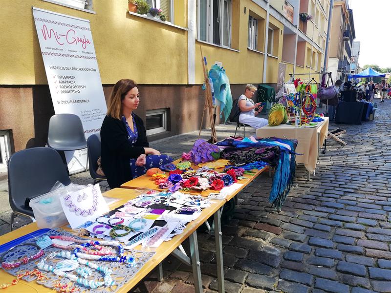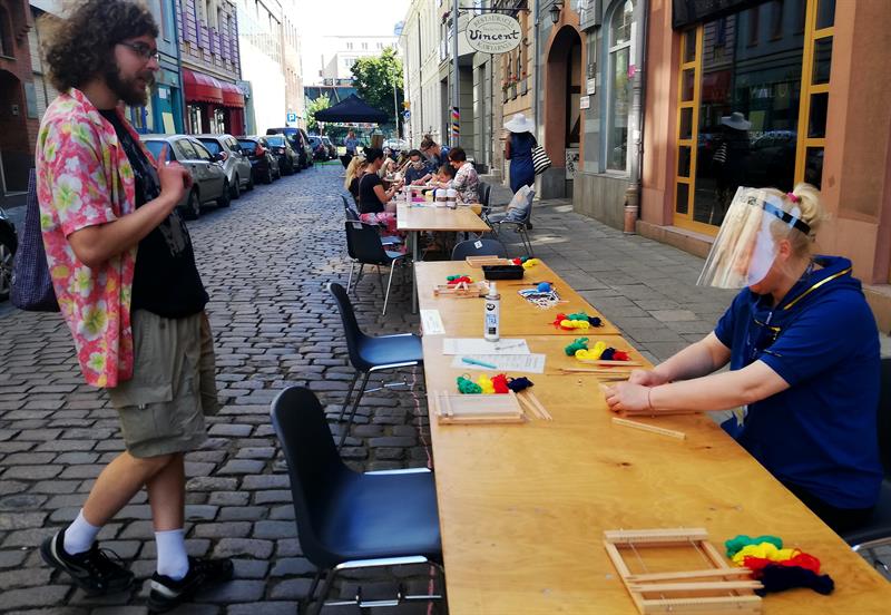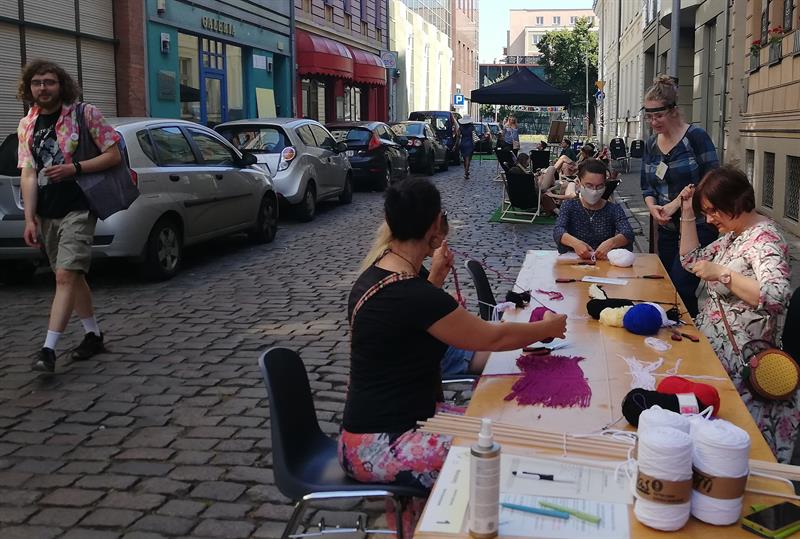 Tkacka na jeden dzień, a właściwie tylko do godz.15, zmienia swe oblicze. Stanęły kramy rękodzielników. Trwa włóczkowy bombing, czyli prezentacja prac artystek szczecińskiego Festiwalu Tkaniny. Każdy może wziąć udział w warsztatach m.in. z makramy, tkania łapaczy snów, bransoletek, tkania na krosienkach oraz tworzenia kolorowych mandali. Można też zwiedzać dawną "Lagunę" - zaplecze byłego sklepu rybnego i zarazem smażalni, która niestety nie przetrwała próby czasu, a w jakiej teraz trwa wystawa szkła artystycznego.
