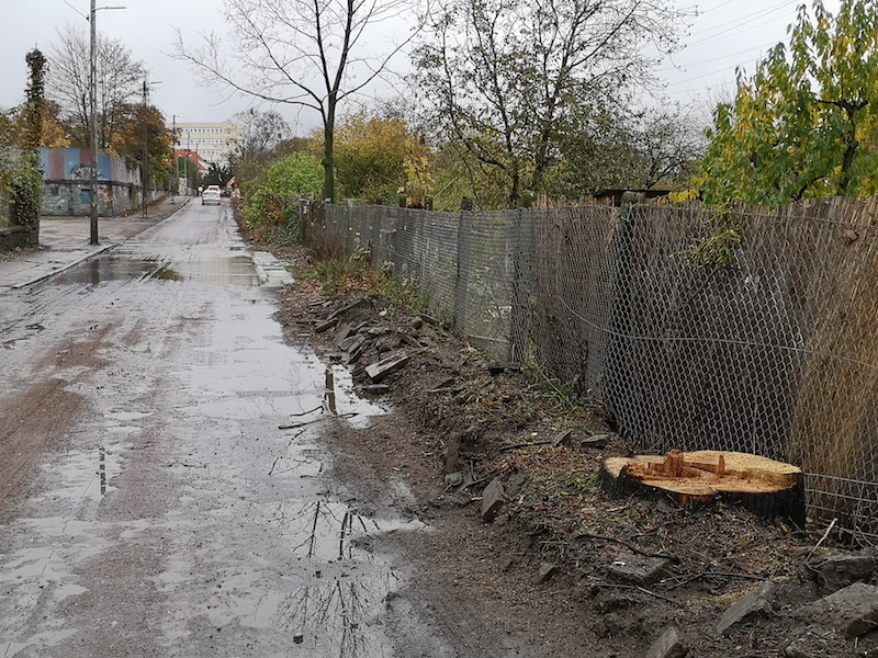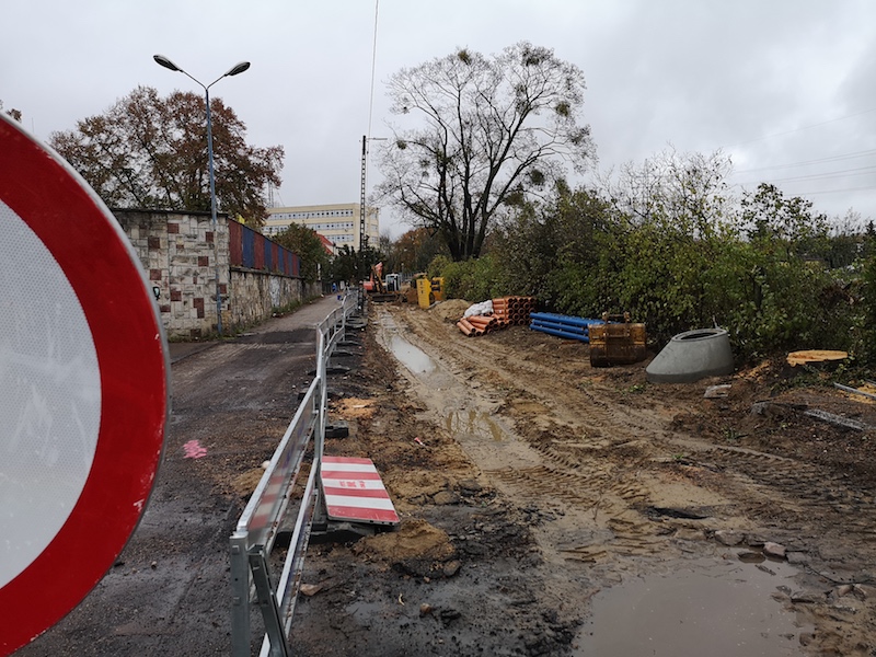 Trwa kapitalny remont ul. Twardowskiego w Szczecinie na odcinku od Mickiewicza do Witkiewicza. Jezdnia ta była bardzo wąska i wielu kierowców musiało uważać w trakcie wymijania. Na razie ekipy drogowców skupiły się na przebudowie odcinka od Mickiewicza do bramy stadionu, ale drogowcy przygotowują już dalszą część do przebudowy. Mowa o odcinku od bramy do ul. Witkiewicza. Wycięto rosnące drzewa po stronie zaniedbanych przez lata ogrodów działkowych oraz zlikwidowano już kilka obskurnych bud na nich stojących. Tutaj w przyszłości powstanie nowa jezdnia, która ułatwi przejazd z Pogodna w stronę Niebuszewa.