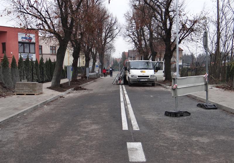 Trwają ostatnie prace brukarskie w pasie chodników i przy dojazdach do posesji. Zgodnie z umową, spółce Elbud Jarosław Sajewicz Elżbieta Tomasiak, której ZDiTM zlecił tę inwestycję w trybie "zaprojektuj i wybuduj", termin wykonania zadania upływa 30 listopada. I - jak informuje Hanna Pieczyńska, rzeczniczka prasowa ZDiTM - wszystko wskazuje na to, że będzie on dotrzymany. Procedura odbioru technicznego rozpocznie się na początku grudnia.
