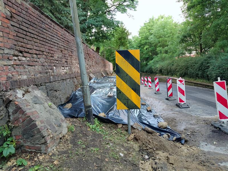 – Rozpoczęły się prace naprawcze – poinformowała Marta Kwiecień-Zwierzyńska z ZDiTM. – Zakres prac przewiduje rozbiórkę uszkodzonego muru oporowego wykonanego z cegły, roboty ziemne, zagęszczenie wykopu, wykonanie podbudowy, wykonanie ławy fundamentowej, wymurowanie nowego muru oporowego, wykonanie w dalszej części muru iniekcji zszywającej oraz wykonanie izolacji przeciwwilgociowej od strony gruntu.