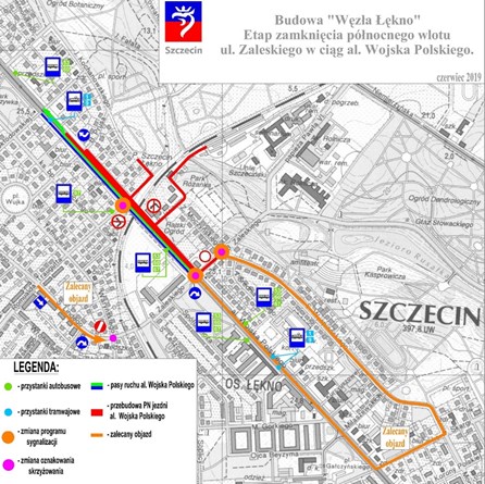 W związku z zamknięciem krótkiego odcinka ul. Bohdana Zaleskiego sygnalizacja świetlna na jej skrzyżowaniu z al. Wojska Polskiego oraz ta w rejonie skrzyżowania ul. Bohdana Zaleskiego z ulicami Stanisława Wyspiańskiego i Zygmunta Moczyńskiego przełączona zostanie na sygnał żółty migający.