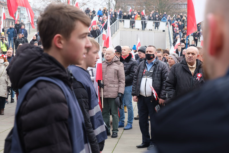 - Wbrew demoliberalnym opiniom możemy się przekonać, jak ważne jest silne państwo narodowe - mówił Artur Szczodry z PŚP. - To dzięki sprawnemu, dobrze zorganizowanemu działaniu polskich służb mundurowych, również naszych rodzin, przyjaciół, bo Dwunasta Zmechanizowana Dywizja bierze udział w obronie polskich granic. Dzięki nim możemy poczuć się bezpiecznie. Dlatego okażmy nasze wsparcie dla wszelkich służ mundurowych, które obecnie są na polskiej granicy.