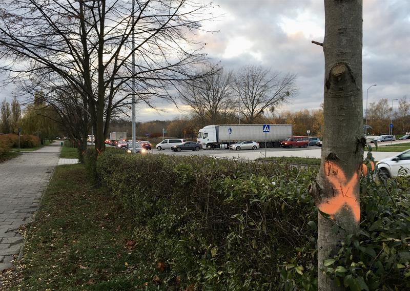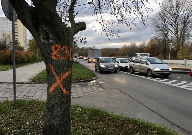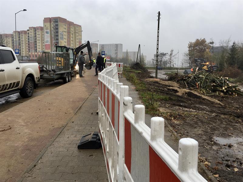 Wykonawca robót, czyli Eurovia Polska SA, już w tym tygodniu rozpoczął przygotowania pod plac przebudowy od ustawienia pierwszych wygrodzeń do ronda Szczecińskich Olimpijczyków. Ze stosowną adnotacją dla właścicieli samochodów, którzy dotąd korzystali z niedużego parkingu na klepisku przyległym do ronda i terenu pobliskiej hali sportowej MOSRiR, w której uprzedza, że od 19 bm., tj. od minionego wtorku, ów parking wśród chaszczy jest nieczynny, a auta tych, którzy mimo to na nim zaparkują, zostaną na ich koszt odholowane przez stosowne służby. W pasie pobocza do ronda rozpoczęły się już pierwsze wycinki samosiejek i zarośli, teren jest porządkowany. Wzdłuż całej ul. Szafera (to w sumie 1,2 km) i biegnącego wzdłuż niej pasa starego chodnika od strony bloków mieszkalnych dokonano też oznaczeń drzew przeznaczonych do wycinki.