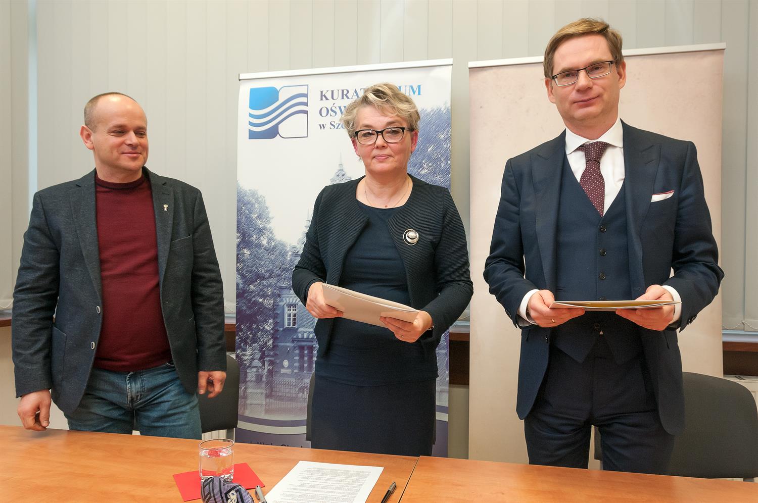 Na zdjęciu: Porozumienia o współpracy podpisali od lewej: Wojciech Woźniak, prezes Fundacji Polskich Wartości, Magdalena Zarębska-Kulesza, zachodniopomorski kurator oświaty i dr hab. Krzysztof Kowalczyk, dyrektor Archiwum Państwowego w Szczecinie