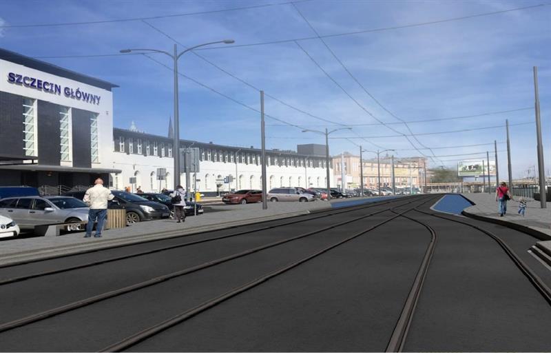 Przebudowa dwóch tras tramwajowych łączących Śródmieście z Pomorzanami obejmie swym zasięgiem także fragment ścisłego centrum, bo będzie prowadzona od dojazdu ul. Nabrzeże Wieleckie w kierunku dworca PKP Szczecin Główny, w ul. Dworcowej i odchodzącej od ul. Krzysztofa Kolumba ul. Nowej do skrzyżowania z al. Niepodległości. Na wysokości wiaduktu kolejowego zaprojektowany został nowy rozjazd z relacjami w kierunku mostu Długiego oraz ul. Krzysztofa Kolumba. Dokończona zostanie wymiana pozostałego jeszcze odcinka starych torów i trakcji na odcinku wspomnianej ul. Nabrzeże Wieleckie. Od podstaw zbudowany zostanie nowy pas torowiska na placu przed dworcem przy zachowaniu jego układu umożliwiającego zmianę toru w sytuacjach awaryjnych czy przez składy dwukierunkowe (z przystosowanym przystankiem dla tego typu taboru).