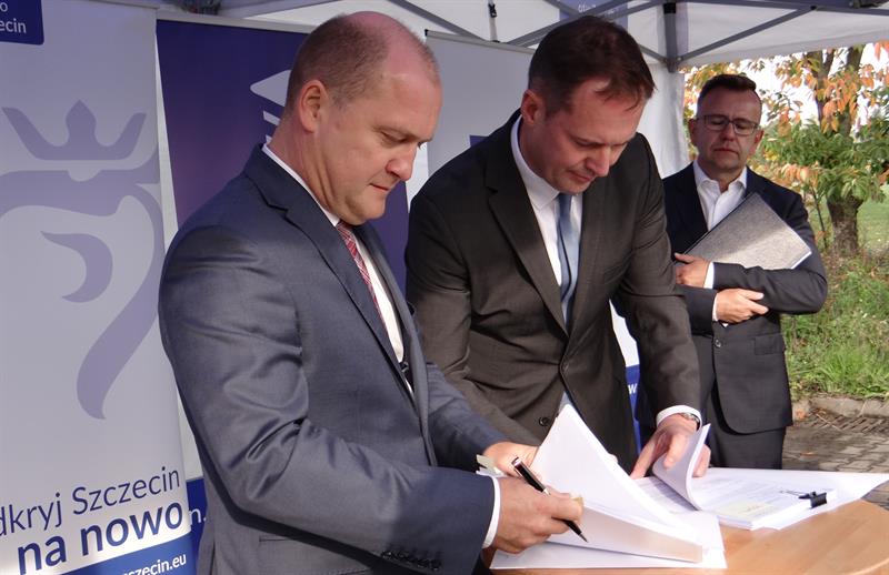 - To naturalny, kolejny etap łączenia ul. Władysława Szafera z przebudowywanymi w tym rejonie także ul. Arkońską i al. Wojska Polskiego, aby przygotować następnie nowe połączenie komunikacyjne z ul. Sosabowskiego w najbliższych latach. Idziemy w tym kierunku miasta, który się rozwija. I mamy świadomość, że ten nowy układ komunikacyjny jest bardzo potrzeby z punktu widzenia dojazdu mieszkańców z Bezrzecza i z całej gminy Dobra, która tędy także jest obsługiwana. Pozwoli też jeszcze lepiej skomunikować halę widowisko-sportową z resztą miasta. Mam nadzieję, że inwestycja zostanie sprawnie przeprowadzona - mówił Piotr Krzystek przed oficjalnym złożeniem podpisów zaaranżowanym na przyszłym placu przebudowy, gdzie na wysokości ul. Franciszka Jarzyńskiego ma powstać nowa pętla tramwajowo-autobusowa.