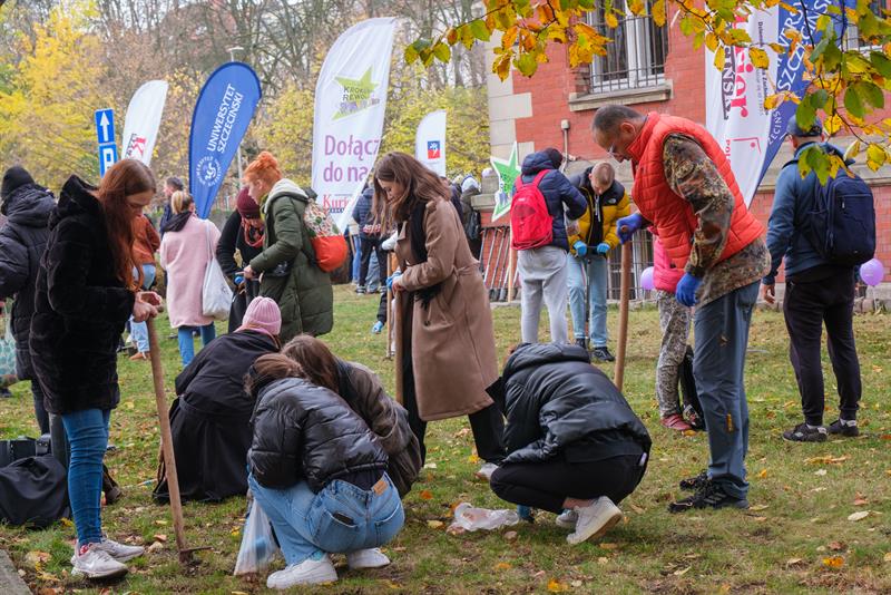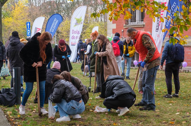 W czwartek (9 listopada) na zieleńcu przed rektoratem Uniwersytetu Szczecińskiego zrobiło się tłoczno. Nie tylko społeczność uczelni, ale również reprezentacje zaprzyjaźnionych placówek oświatowych wzięły udział we wspólnym sadzeniu krokusów.