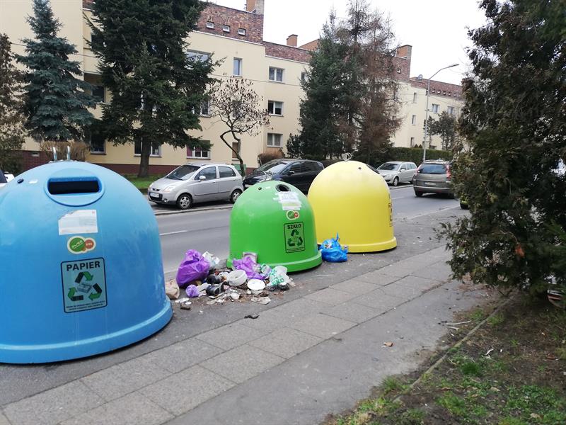Niestety - jak widać przy ul. Brzozowskiego - nie jest z tym najlepiej. Skoro śmieci pozostawione przy „dzwonach" wiatr roznosi po okolicy.