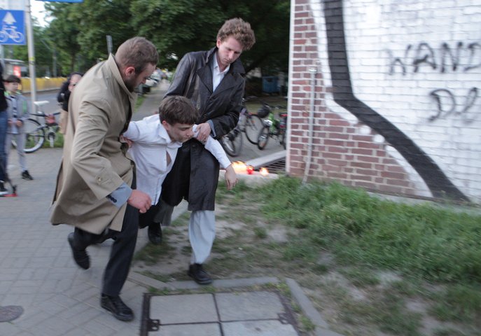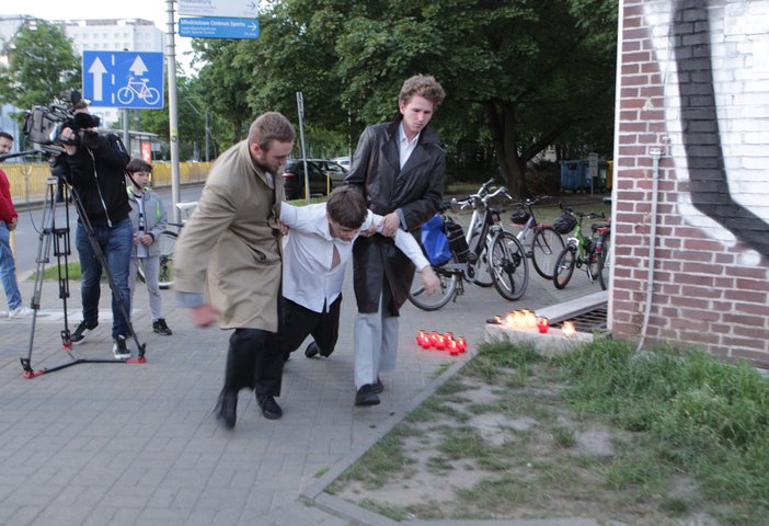 Organizatorzy rocznicy przygotowali krótką inscenizację, podczas której dwóch mężczyzn symbolizujących funkcjonariuszy komunistycznej bezpieki wlekło trzymając pod ramiona mężczyznę, na którym miano za chwilę wykonać wyrok śmierci przez strzał w tył głowy.