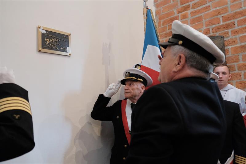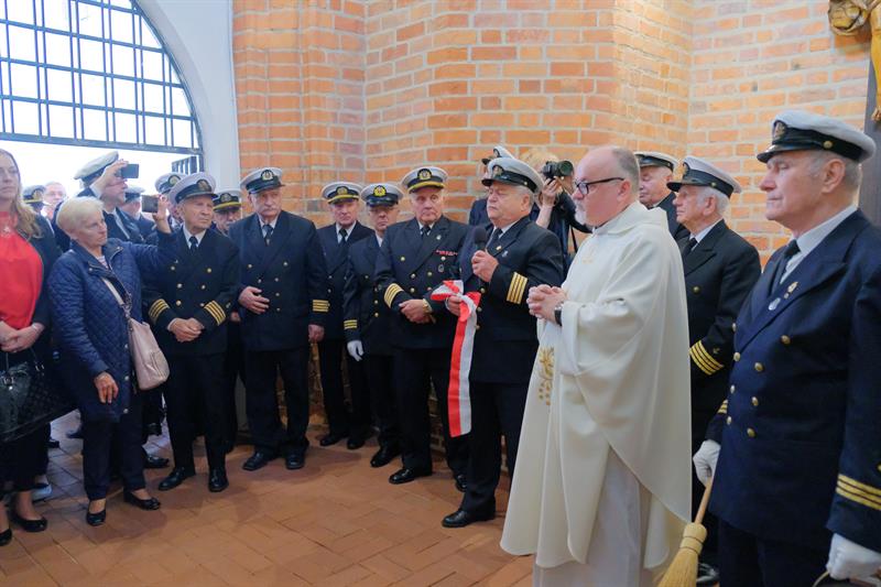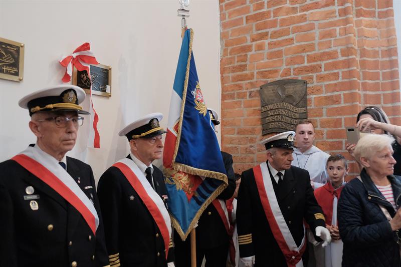 Diecezjalny duszpasterz ludzi morza, ks. Stanisław Flis odprawił mszę św. i poświęcił tablicę. Odsłonił ją st. of. mech. okr. Wojciech Zawadzki, autor graficznego przedstawienia jednostek rybackich na tablicach w kaplicy morskiej.
