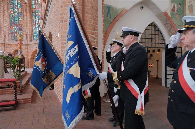 Uroczystość uświetniły poczty sztandarowe: Stowarzyszenia Starszych Oficerów Mechaników Morskich, Euroafriki oraz Duszpasterstwa Ludzi Morza Stella Maris w Szczecinie.