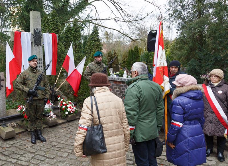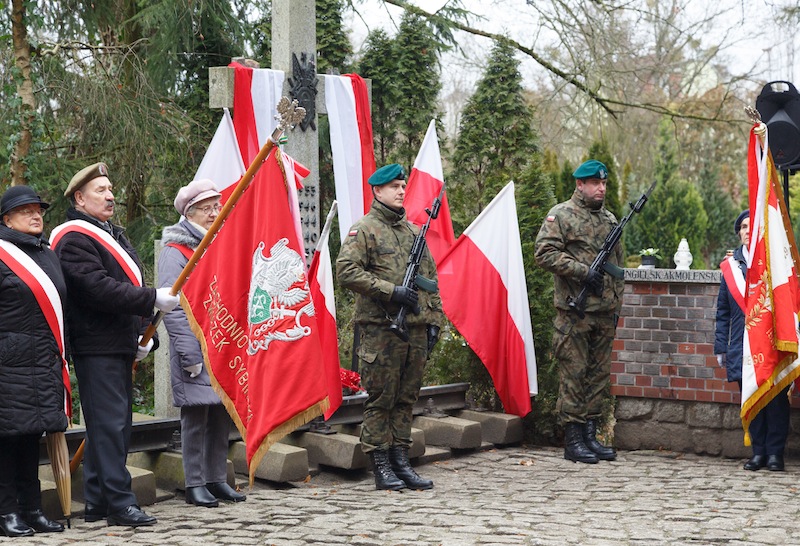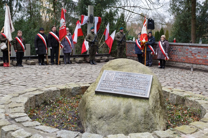 Na zdjęciu: Przy pomniku Sybiraków na Cmentarzu Centralnym w Szczecinie odbył się apel pamięci oraz złożono kwiaty i wiązanki