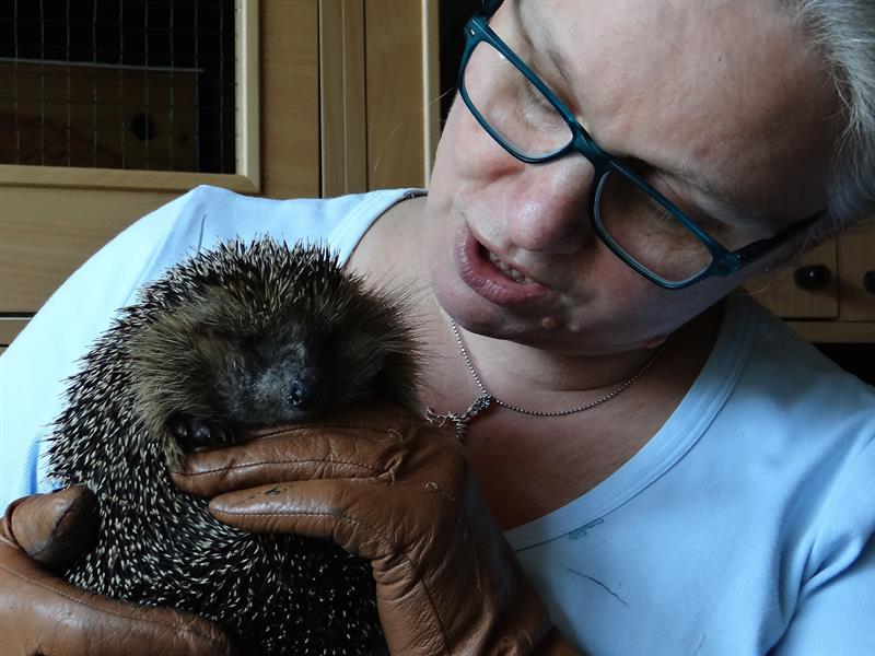 Na zdjęciu: Renata Pihan z Jeżarni - szczecińskiego pogotowia dla jeży - wraz z „kolczastymi" podopiecznymi.