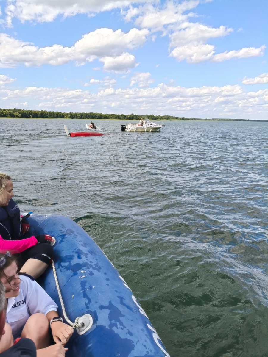 W wodzie znajdowała się trzyosobowa rodzina. Byli to mieszkańcy Szczecina, którzy wypożyczyli łódź i wypłynęli na jezioro. Z powodu silnego podmuchu zmiennego wiatru, łódź się wywróciła, a ojciec, matka i córka wpadli do jeziora. Wszyscy zostali wyciągnięci z wody przez wodniaków, którzy udzielili im pierwszej pomocy przedmedycznej w związku z wyziębieniem organizmu. Łódź odholowano do najbliższego brzegu na plaży Bielkowo.