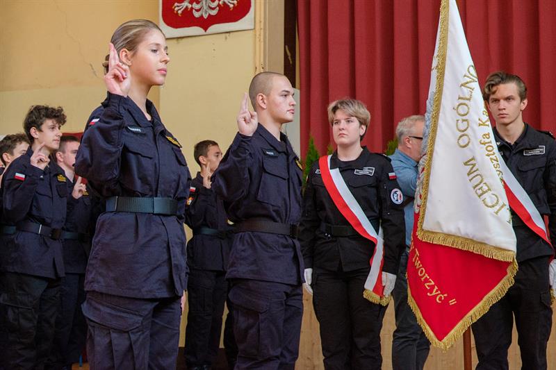 W auli VII Liceum Ogólnokształcącego im. K. K. Baczyńskiego w Szczecinie w piątek 25 października odbyło się ślubowanie 60 uczniów klas pierwszych. W uroczystości uczestniczył m.in. wojewoda zachodniopomorski Adam Rudawski oraz przedstawiciele służb mundurowych, podkreślając znaczenie tradycji patriotycznych i służby publicznej. Po odśpiewaniu hymnu pierwszoklasiści złożyli przysięgę na sztandar szkoły, a uczniowie klas mundurowych zostali symbolicznie pasowani na elewów. Był to szczególny moment dla młodzieży i ich rodzin, rozpoczynający nowy etap edukacji.