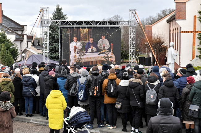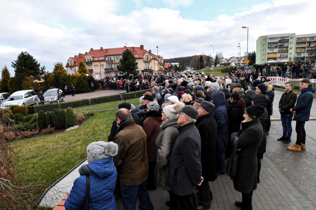 Długo przed rozpoczęciem mszy żałobnej w okolicy świątyni przy telebimie gromadzili się liczni koszalinianie. Wewnątrz w ceremonii brali udział jedynie najbliżsi.