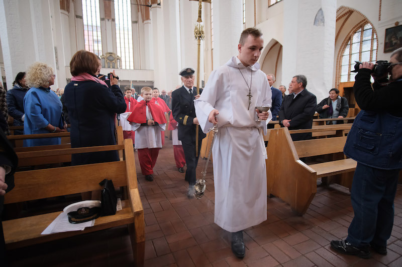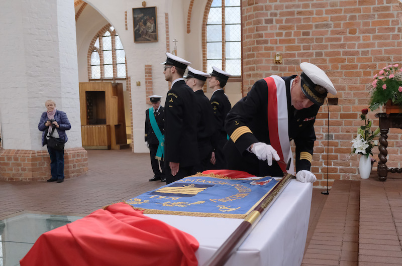 Upamiętnienie ofiar katastrofy statku „Nysa” oraz nadanie sztandaru Szczecińskiemu Klubowi Kapitanów Żeglugi Wielkiej - to uroczystości, które się odbyły w niedzielę (20 października) w kościele morskim p.w. Św. Jana Ewangelisty w Szczecinie. Towarzyszyły Mszy św., która w każdą trzecią niedzielę miesiąca jest tu odprawiana w intencji ludzi morza.