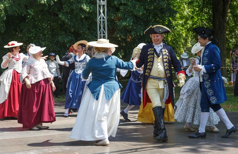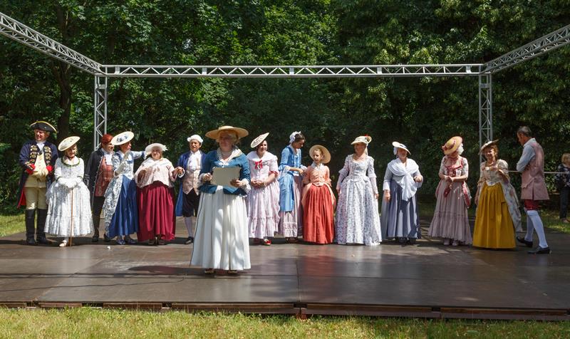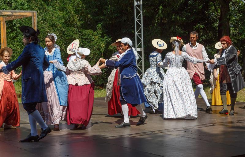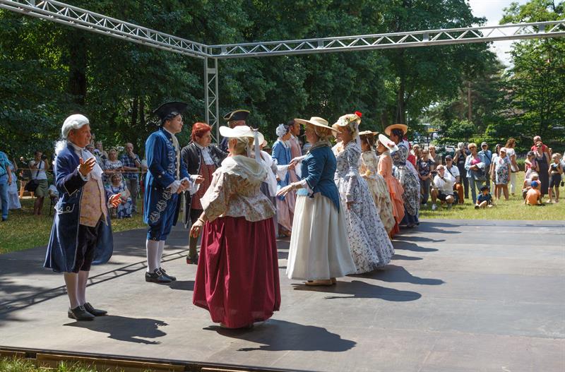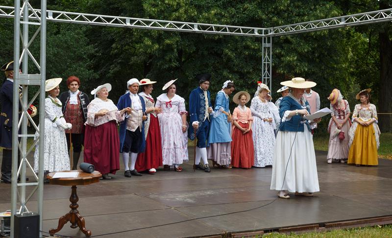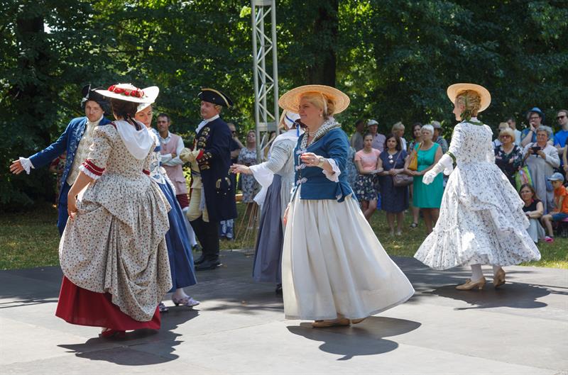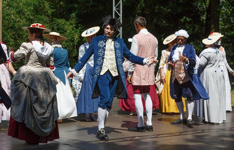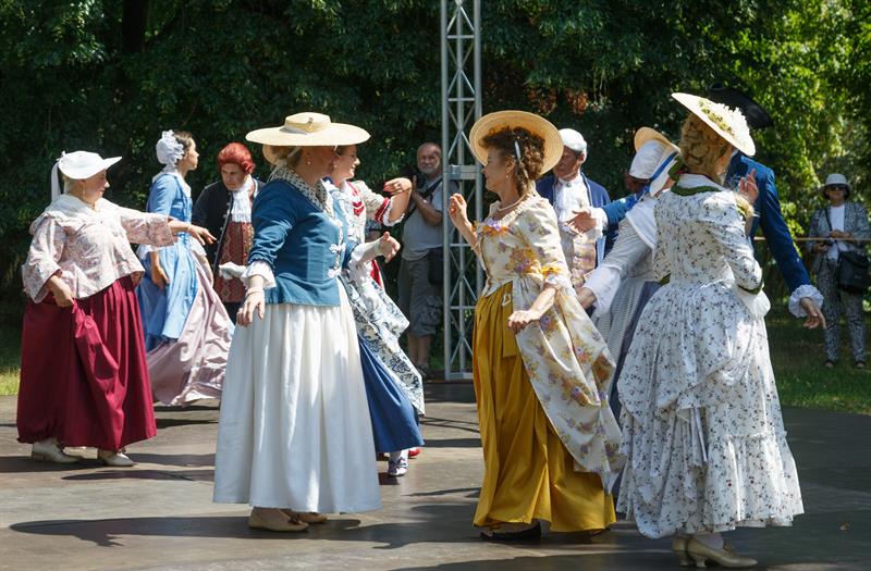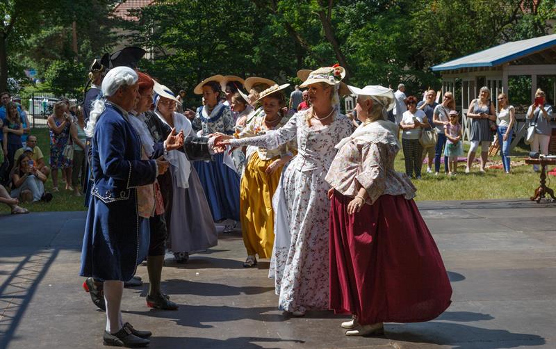 Członkowie grupy rekonstrukcyjnej "Metrum", która propaguje barokowy styl, zaprezentowali się w strojach z XVIII wieku w ramach Rokokowego Pikniku Różanego. Zaprezentowali tańce dworskie, a przybyłym proponowali naukę tańca, prezentację strojów z epoki, gry i zabawy, inscenizacje oraz pamiątkowe zdjęcia.