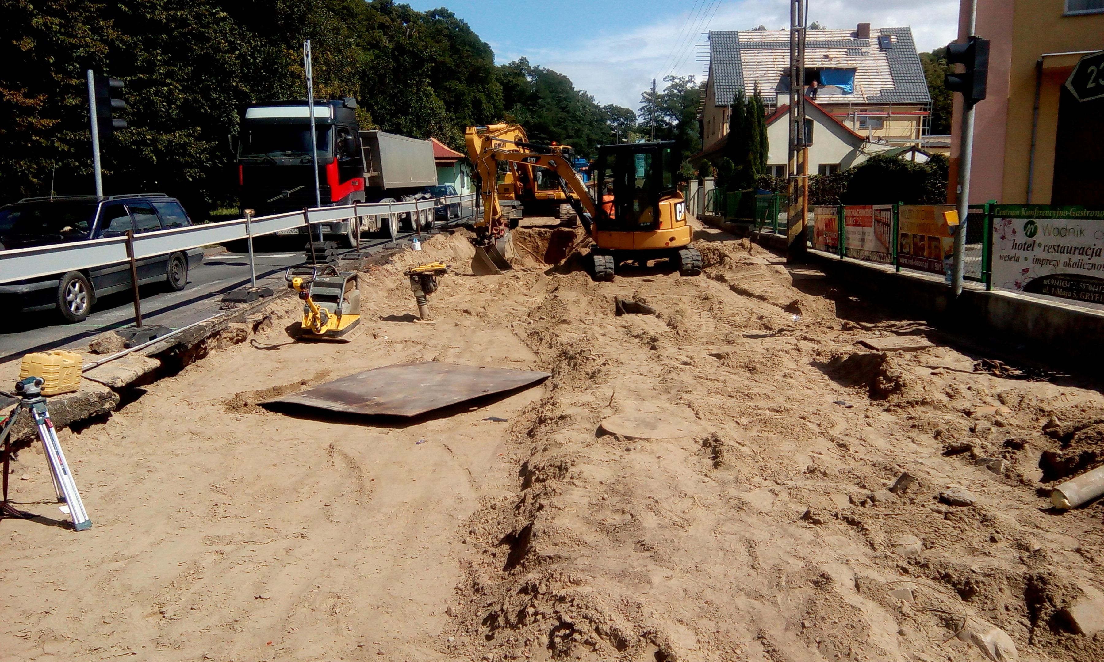 Podczas robót budowlanych związanych z przebudową kanalizacji deszczowej, w okolicy skrzyżowania ulicy Łużyckiej z ul. Armii Krajowej w Gryfinie, koparką uszkodzona została rura wodociągowa. Pracownicy PUK na krótką chwilę odcięli wodę i ocenili rozmiar szkody.
